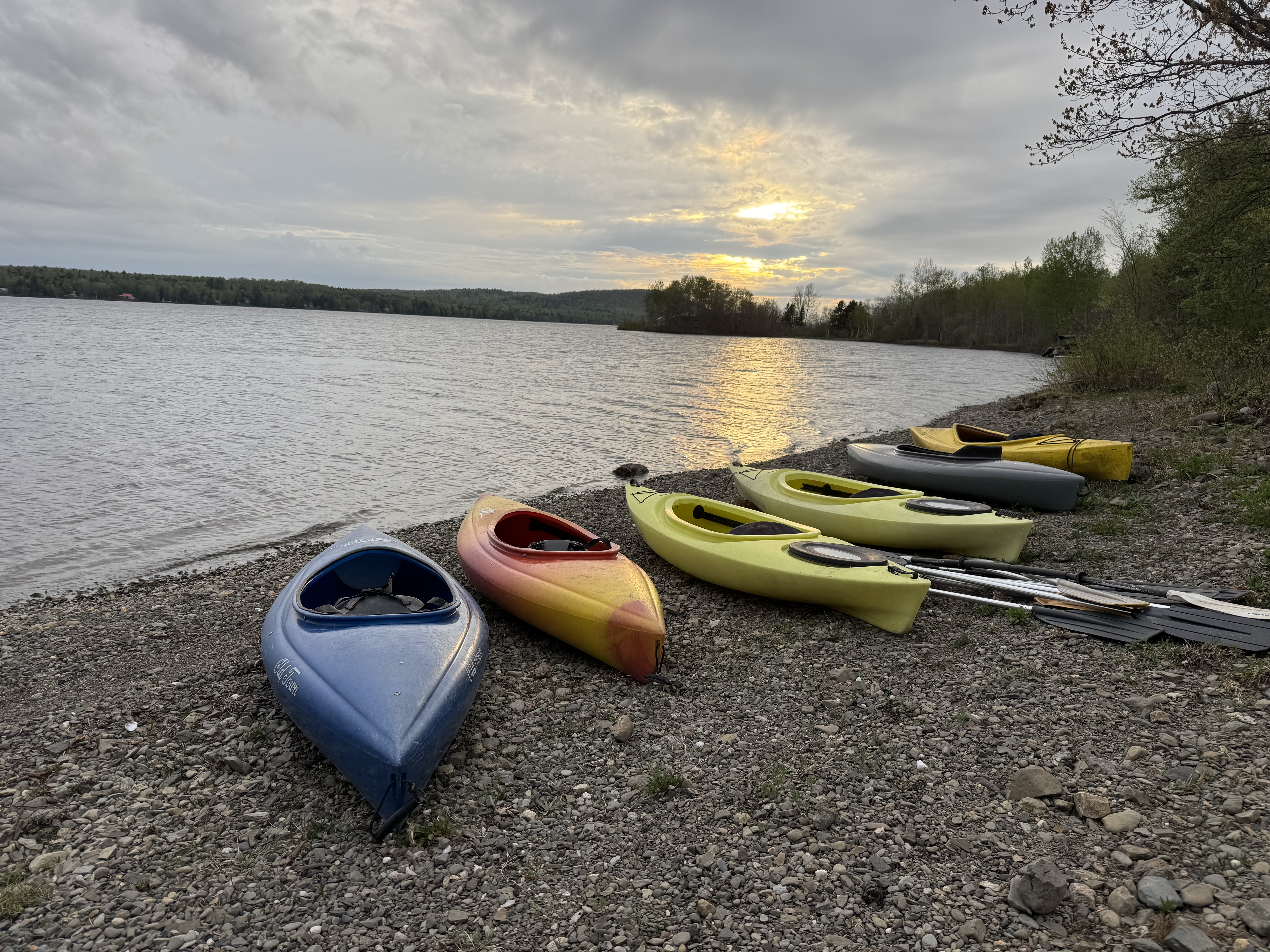 "The Cottage" is our "full amenity" camp and our largest rental unit. Amazing views of the lake from the living area and bunk room. This cabin features a separate "master bedroom" with queen bed, as well as a bunk room with 2 twin beds and 2 full beds. A full kitchen, dining area with large table, living room, and private bathroom with laundry. TV and Wireless Internet. Firewood and Gas Grill provided. Canoe & Kayaks available at no additional charge for our guests.